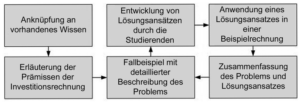 - Nach der Erläuterung der Probleme entwickeln die Studierenden Lösungsansätze selbstständig und wenden diese anschließend in einer Beispielrechnung an.